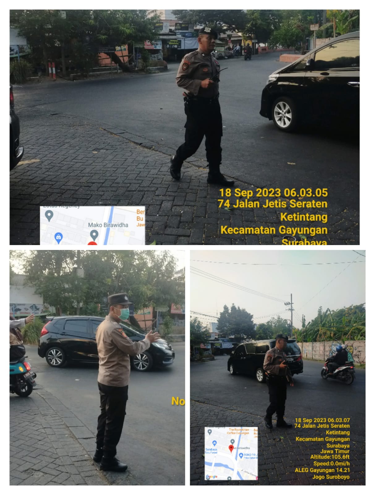 Polsek Gayungan Polrestabes Surabaya. (19/09/2023) anggota polsek gayungan Polrestabes Surabaya melaksanakan giat pos awal pengaturan lalin. pelaksanaan tugas anggota dalam pelayanan masyarakat