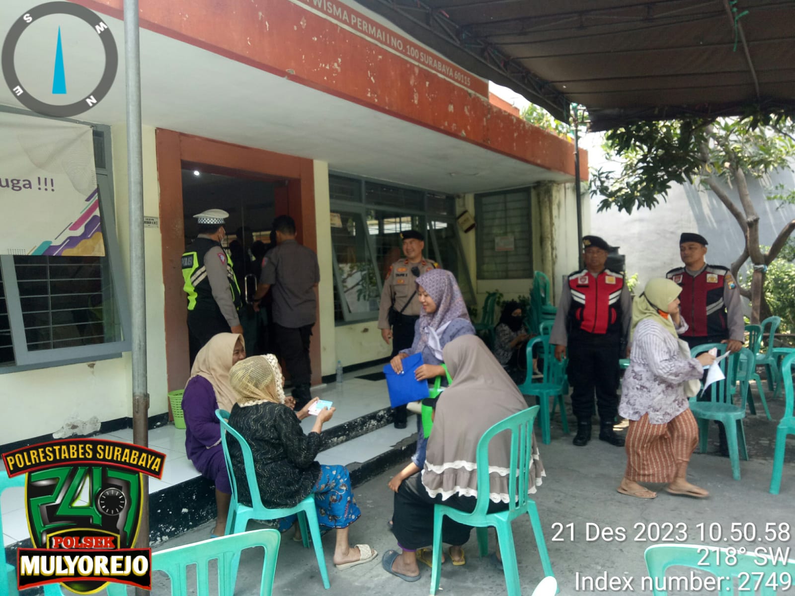 Polrestabes Surabaya – Untuk menciptakan situasi yang aman dan nyaman bagi warga penerima Bantuan El Nino dampak perubahan cuaca , personil Polsek