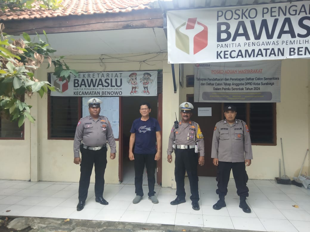 Piket Fungsi Polsek Benowo Polrestabes Surabaya dipimpin Pawas melaksanakan kegiatan Patroli Mantap Brata Obyek Vital kantor Bawaslu di wilayah Benowo Surabaya untuk